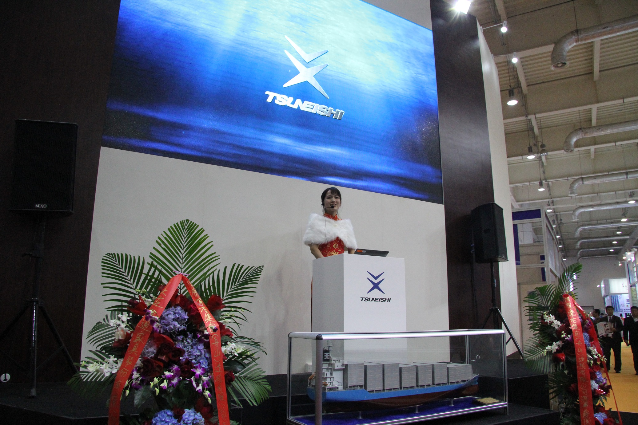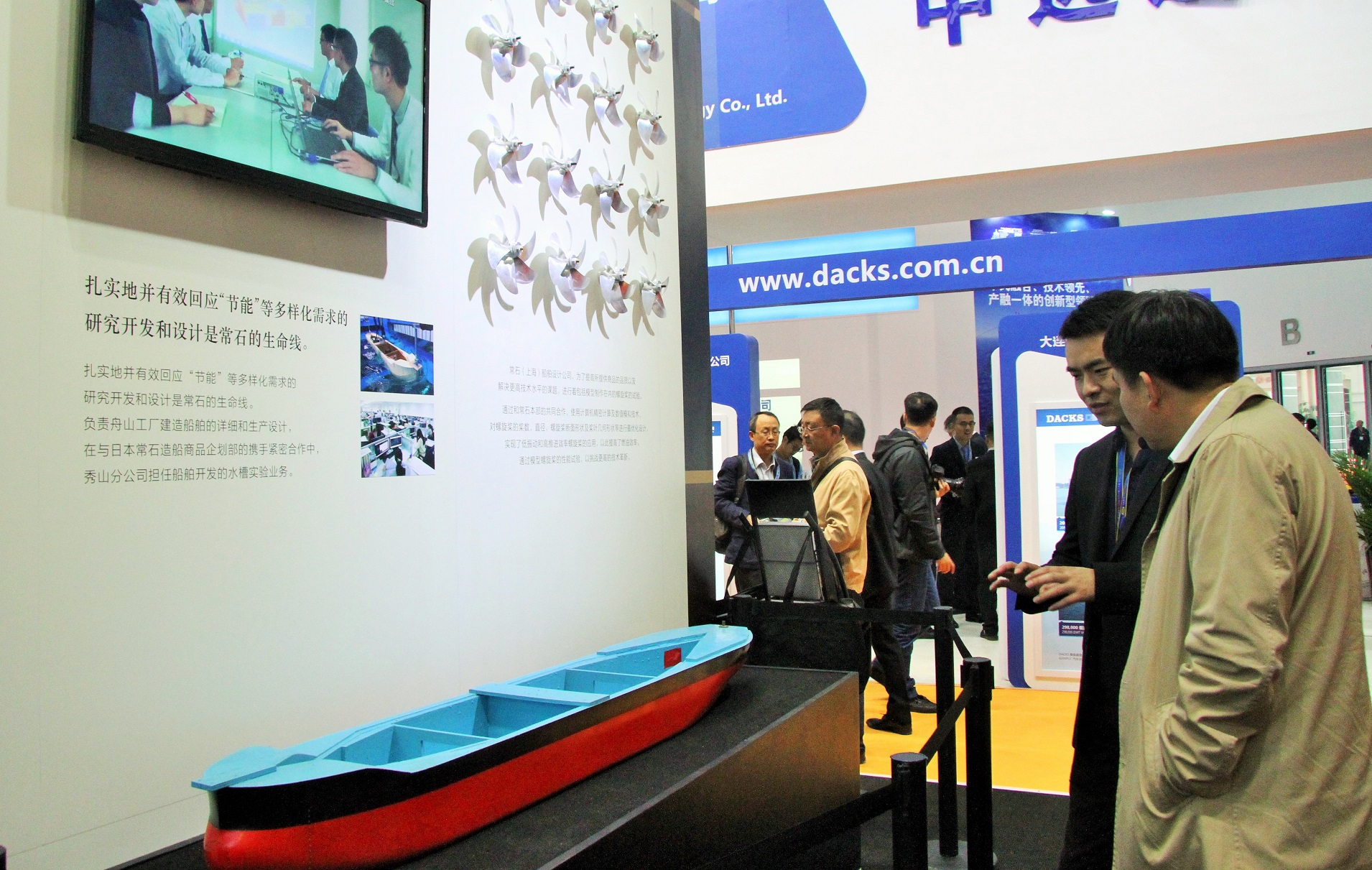 在“SHIPTEC CHINA 2016”的展廳內(nèi),常石舟山介紹了為應(yīng)對(duì)多種市場(chǎng)需求而開發(fā)的2800TEU集裝箱運(yùn)輸船、LR(Large Range I)型成品油輪、以及為擴(kuò)大造船種類正在建設(shè)中的牲畜運(yùn)輸船。