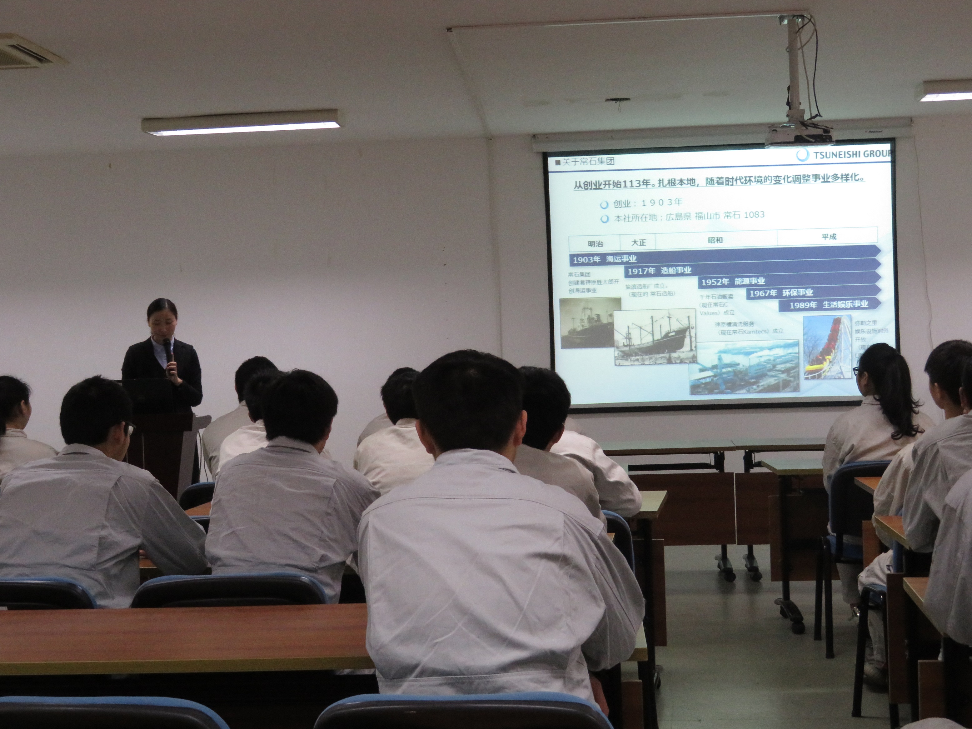 前輩為我們介紹集團事業(yè)概要時,我聽得極為認(rèn)真。前輩說:常石集團是一個百年集團,目前,已在日本,中國,菲律賓,巴拉圭開設(shè)了船廠,并涉及了包括環(huán)保、造船、航運、能源、娛樂在內(nèi)的這幾個行業(yè)領(lǐng)域。前輩講到最后的那句話特別讓我感動,她說:我們每個人都要保持一顆好奇的心去探究未來。