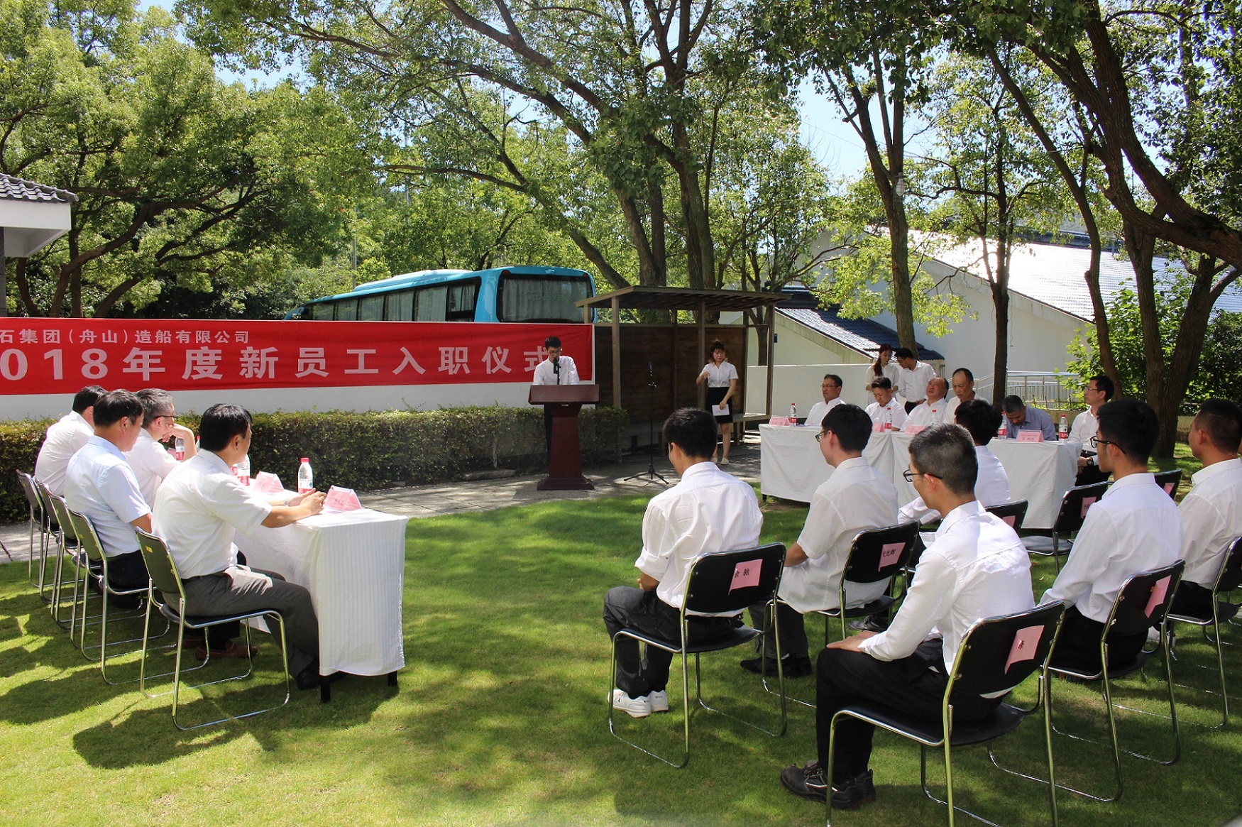 以浙江省舟山市為建造基地的常石集團(舟山)造船有限公司(所在地:中國浙江省舟山市岱山縣秀山鄉(xiāng);總經(jīng)理:佐騰二郎;以下簡稱:TZS)于8月31日在秀嶺山莊別館為15名新入職員工舉辦了2018年度入職儀式。